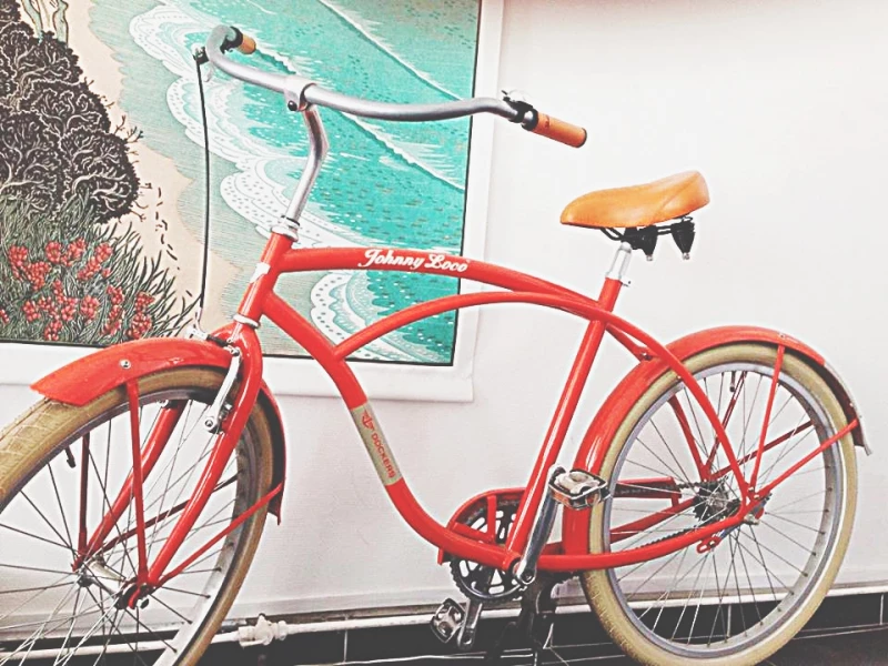 Dockers a collabor avec le fabricant de vlo nerlandais Johnny Loco sur la cration d’un beach cruiser en dition limite. Ce vlo possde un cadre en acier de 54 cm et est quip dun frein arrire rtropdalage de marque Shimano. Son large guidon, ses grandes roues et sa selle confortable lui apportent un look masculin trs “West coast” amricaine. Le design n’en est pas moins europen : peinture de haute qualit, lments en acier inoxydable, pneus anti crevaison (marque Schwalbe) pour un usage quotidien et bien sr une position idale pour pdaler toute allure. Le vlo possde par ailleurs un frein avant manuel produit par V-brake.