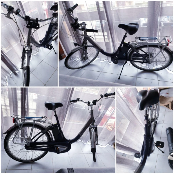Roues 26” – transmission 4 Shimano NEXUS – Cadre Aluminium Alu x 6061 – poids 23 kg – puissance 250w dans le pdalier – batterie amovible type NiMh 24V/6.2 Ah – autonomie 35 40 km